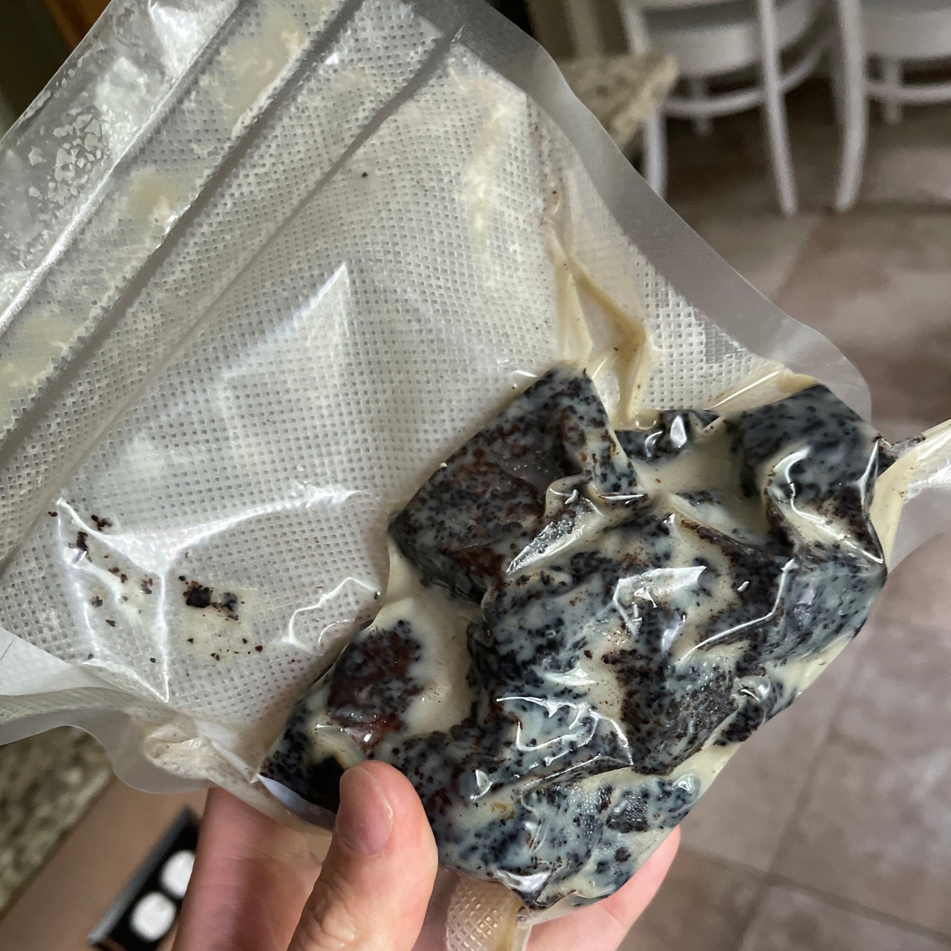Vacuumed, sealed and put into a thermal pouch with ice packs. Arrives cold (not frozen). If consuming the same or next day, leave in fridge. If later, store in freezer.
